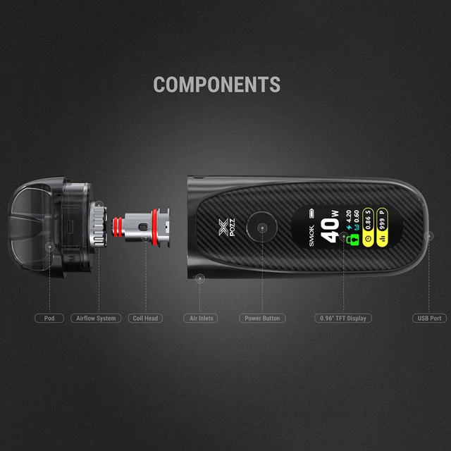 Plongez-vous dans le POZZ X pour découvrir plus de possibilités. Il est doté de nombreuses fonctionnalités étonnantes comparable au Box Mod: écran tft de 0.96 pouces, puissance réglable, canal d’admission d’air élargi, grande capacité de batterie, protection fonctionnelle multiple et plus encore.