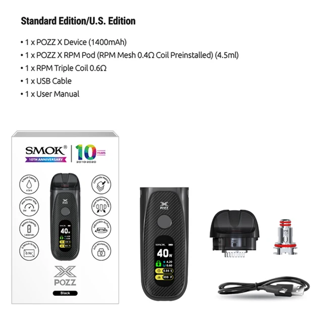 SMOK POZZ X Pod Mod Kit 40W 1400mAh batterie RPM Mesh Coil E Cigarette vaporisateur 4.5ml Pod Vape Kit VS RPM80 Fetch Pro