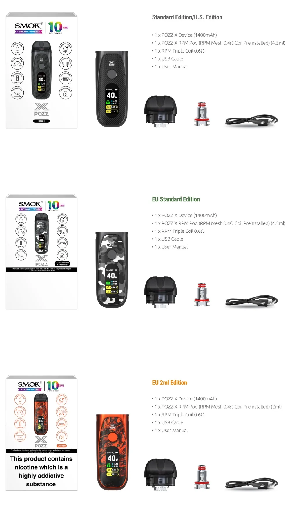 • 1 x POZZ X RPM Pod (tr/min maille 0,4Ω bobine préinstallée) (4.5ml)