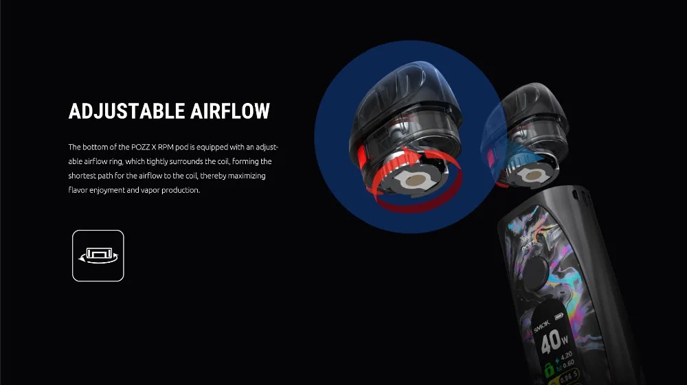 La percée du système pod, l’amélioration de la puissance et des performances et l’innovation de nouvelles possibilités sont maintenant prêtes à être découvertes. Il s’agit de POZZ X, un nouveau kit système pod avec une batterie puissante jusqu’à 1400mAh et une grande capacité de 4.5ml. Le kit comprend un dosette POZZ X RPM qui permet un débit d’air réglable, et deux bobines RPM qui sont idéales pour le style de vapotage MTL ou DTL. Vous voulez trouver plus de possibilités X? Continuez à en découvrir plus…