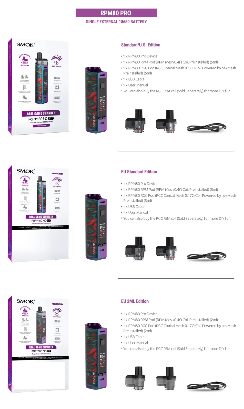La série RPM80 est notre prochain changeur de jeu dans la catégorie pod mod. RPM80/ RPM80 PRO est livré avec deux dosettes et deux bobines: l’une est la