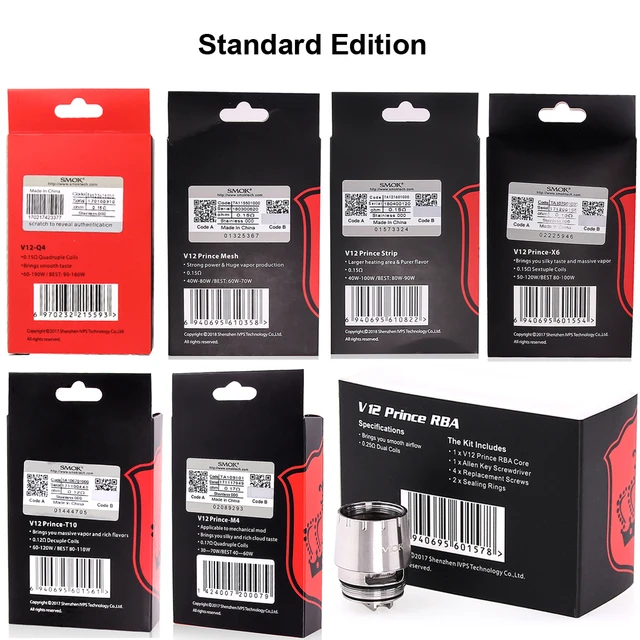 | Compatible Tank | TFV12 Prince Tank / TFV12 Prince Cobra Edition |
