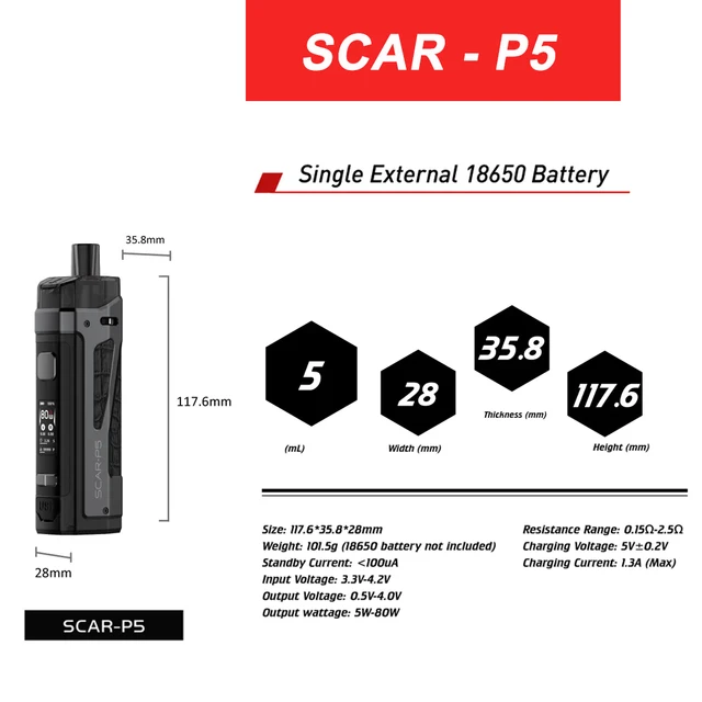 1 avis pour SMOK – vaporisateur de cigarettes électroniques 80W, Vape SCAR P5 Pod Mod, cartouche 5ml, RPM2, bobine de maille, VS RPM80 SCAR-18, en Stock