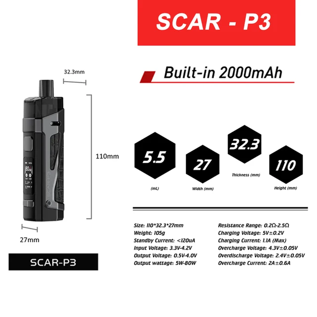 | Built in 2000mAh Battery | SCAR-P3 (5.5ml Capacity ) |