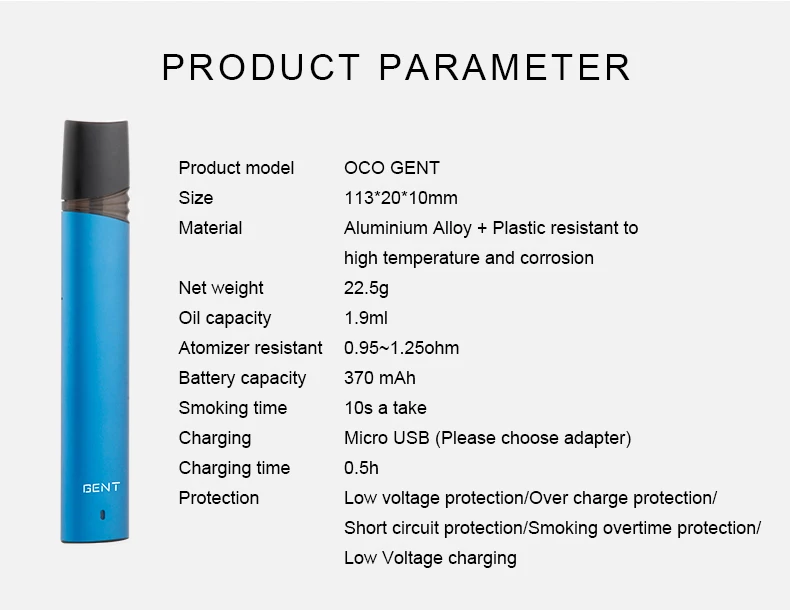 SMY OCO GENT – cigarette électronique rechargeable MTL, Kit de démarrage pour stylo vapoteur, batterie 370mAh, vaporisateur à Charge rapide
