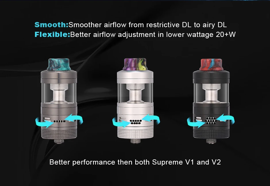 L’aromiseur Steam Crave suprême V3 RDTA suit les concept de base précédents et présente quelques améliorations pratiques. Comme le flux d’air inférieur infiniment réglable, système de remplissage supérieur avec verrouillage à baïonnette. Il est fabriqué en acier inoxydable + verre pyrex traité avec précision, le diamètre de 25mm est plus petit et plus facile À utiliser que les produits précédents. Aromamizer suprême V3 RDTA est un atomiseur de réservoir goutteur multifonctionnel reconstructible de haute qualité. Le pont à bobine unique de la version de base, un kit de pont en maille et un pont sans poteau peuvent également être utilisés pour le kit avancé. Ceux-ci complètent les accessoires somptueux, tels qu’une cheminée de remplacement et le verre à bulles XL, et rendent le RDTA encore plus flexible. Il peut être conçu individuellement, qu’il s’agisse d’un verre de réservoir de 6ml ou 7ml ou d’un pont en option. Il peut être utilisé de manière très flexible et peut être converti immédiatement. En utilisant la cheminée incluse, vous pouvez également choisir d’utiliser l’aromamiseur suprême V3 RDTA avec les ponts de l’aromamiseur suprême V2 RDTA. De plus, l’aromiseur suprême V3 RDTA peut être utilisé dans différents modes.