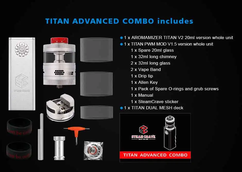 | Numéro de Modèle | Steam Crave Titan Advanced Combo Kit |