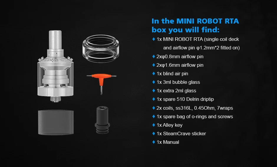 | Numéro de Modèle | Steam Crave Mini Robot RTA Tank |