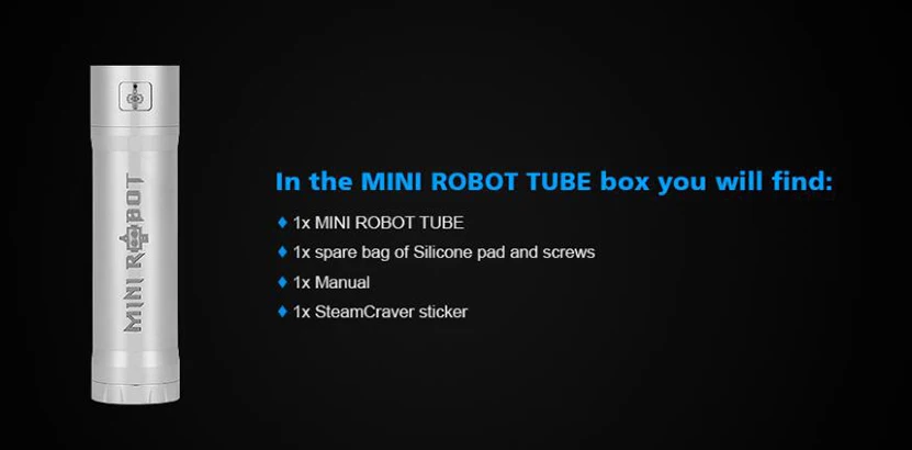 Steam Crave Mini Robot Tube Vape Mod alimenté par une seule batterie 18650 510 filetage 3.5V/3.8V/4.2V E-Cigarette vaporisateur