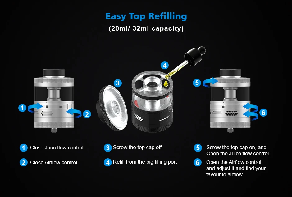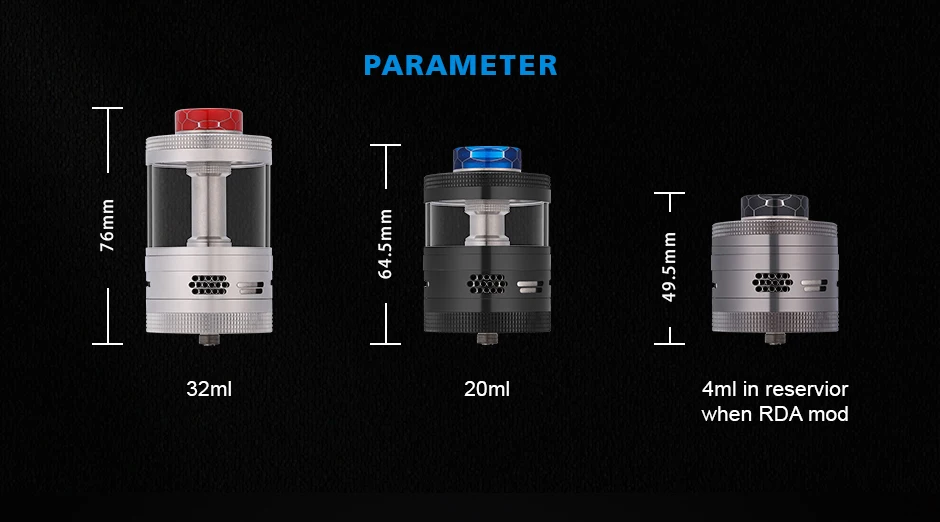 49.5mm x 32mm (4ml en réservoir en Mode RDA)