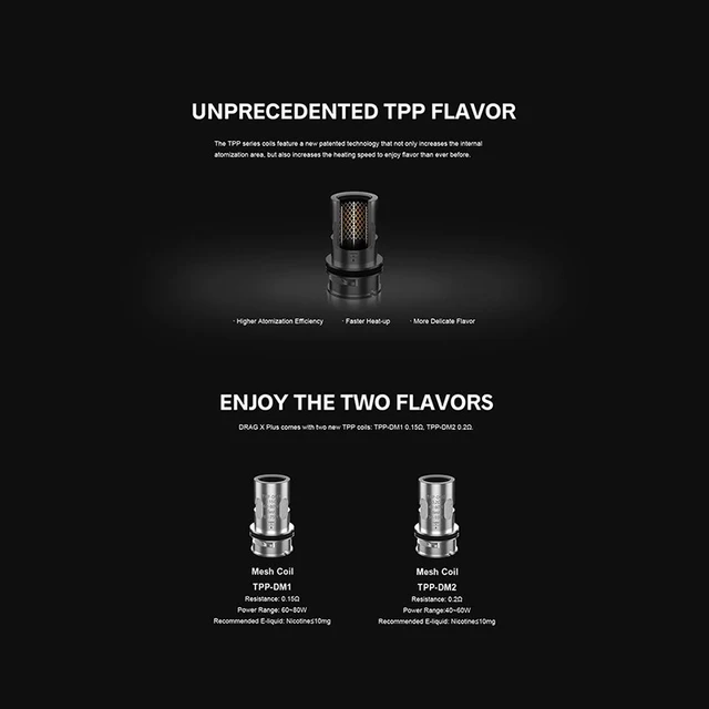 La bobine TPP est adaptée au Kit VOOPOO glisser 3/glisser X Plus. C’est bobine de maille de 0.2ohm DM2 pour 40 ~ 60W.