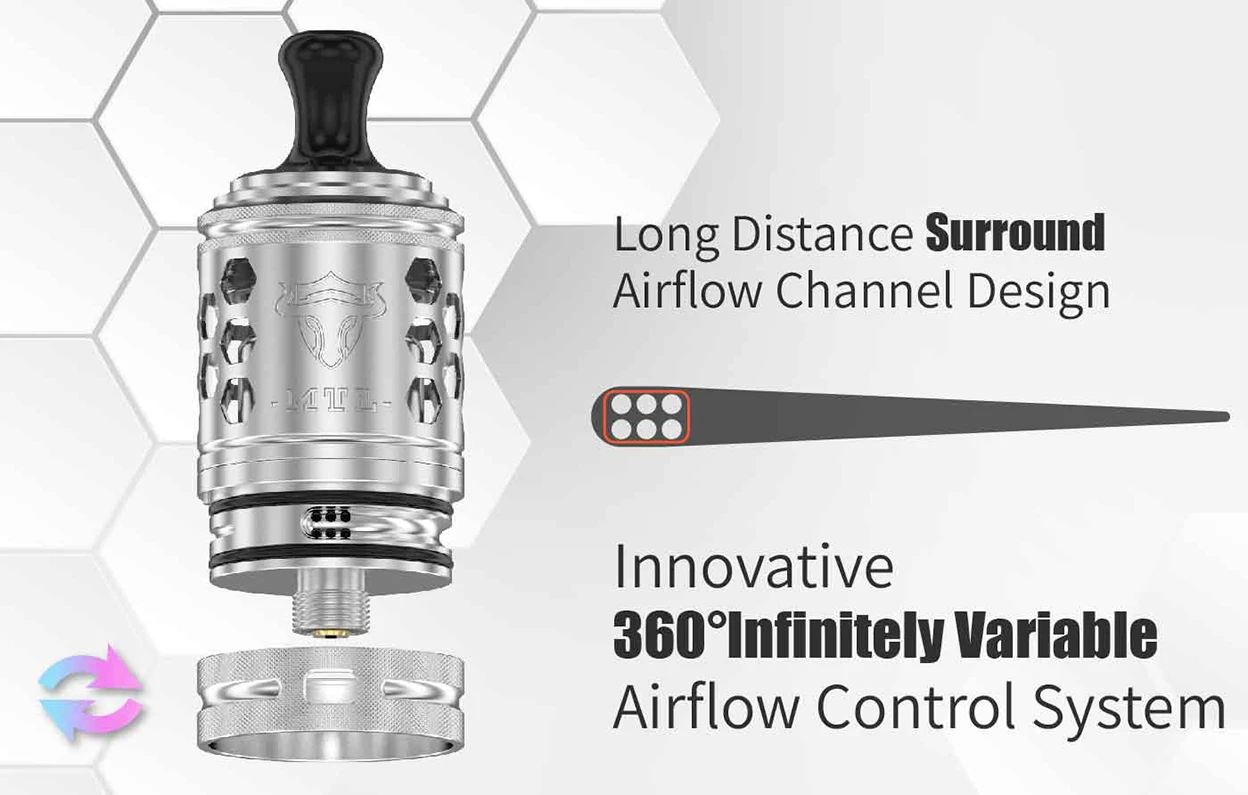 Tête de tonnerreCréations Tauren MTL RTA est fabriqué en acier inoxydable et en verre de 24mm de diamètre et d’apparence exquise. Thunderhead créations Tauren MTL dispose de 61 trous d’air micro en nid d’abeille pour frapper directement la bobine et d’une conception de canal de flux d’air interne incurvé avec double dôme intérieur pour apporter une révolution à l’industrie MTL. THC Tauren MTL RTA adopte un système innovant de contrôle du flux d’air à 360 degrés infiniment pour un flux d’air des plus précis. THC Tauren MTL a une capacité de 2ml avec un design de remplissage supérieur. Et Tauren MTL RTA adopte un pont à double poteaux pour construire une seule bobine facilement.