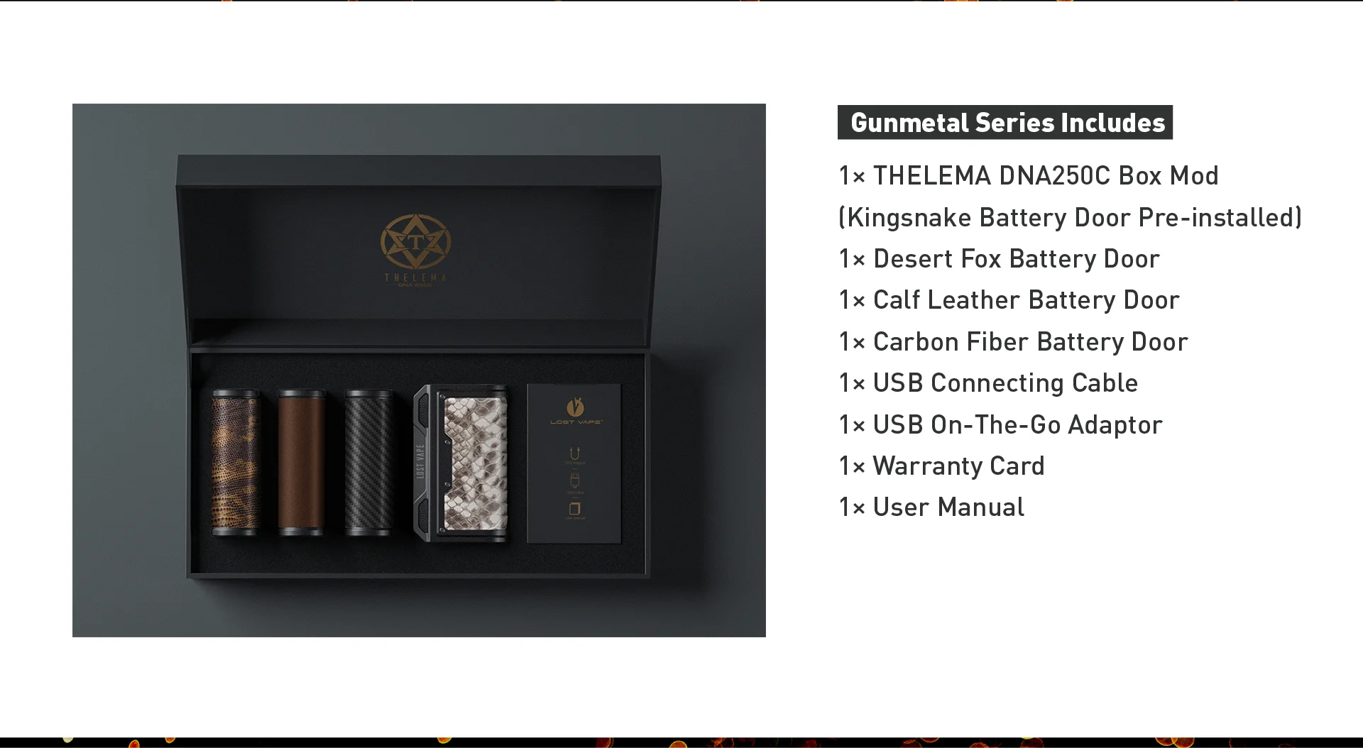 | Numéro de Modèle | Lost vape THELEMA DNA 250C LIMITED EDITION MOD |