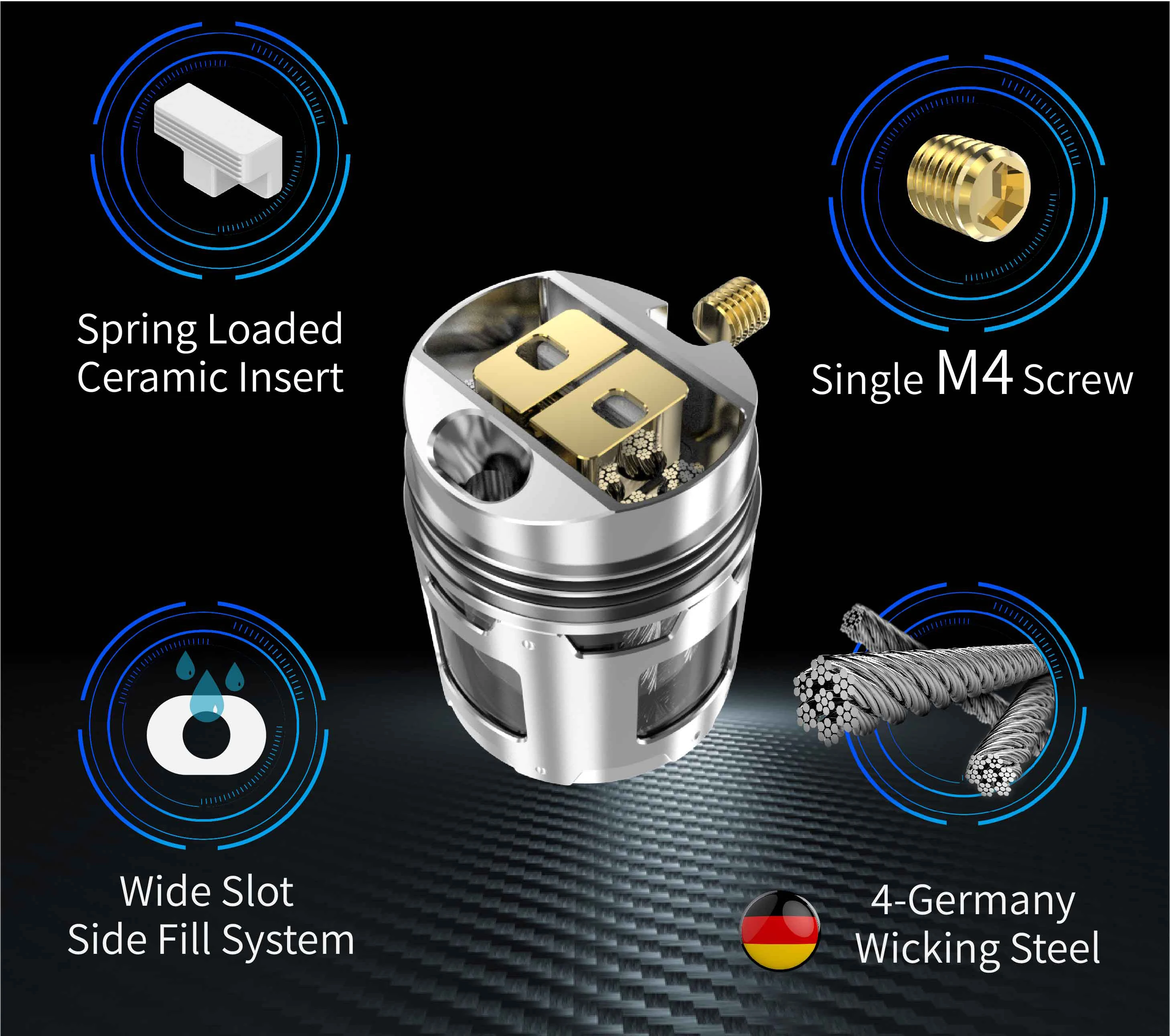 Artemis RDTA est un atomiseur de réservoir d’égouttage reconstructible innovant avec une conception de pont de construction sans poste. Il est livré avec un insert en céramique à ressort durable et de haute qualité et un système de mèche en acier inoxydable 4-allemagne. Pouvant contenir jusqu’à 4.5ml de grande capacité de réservoir, il utilise un système de remplissage latéral à large fente, caché par le capuchon supérieur. Et pour vous apporter la meilleure saveur, il adopte un système de contrôle du flux d’air en nid d’abeille à 26 trous. En outre, s’adaptant à une seule bobine dans le pont de construction sans vis unique, ThunderHead créations Artemis peut également être utilisé avec une broche squonking BF, permettant un couplage fonctionnel avec tous les mods squonk. Puis-je avoir un grand plaisir grâce à Artemis RDTA!