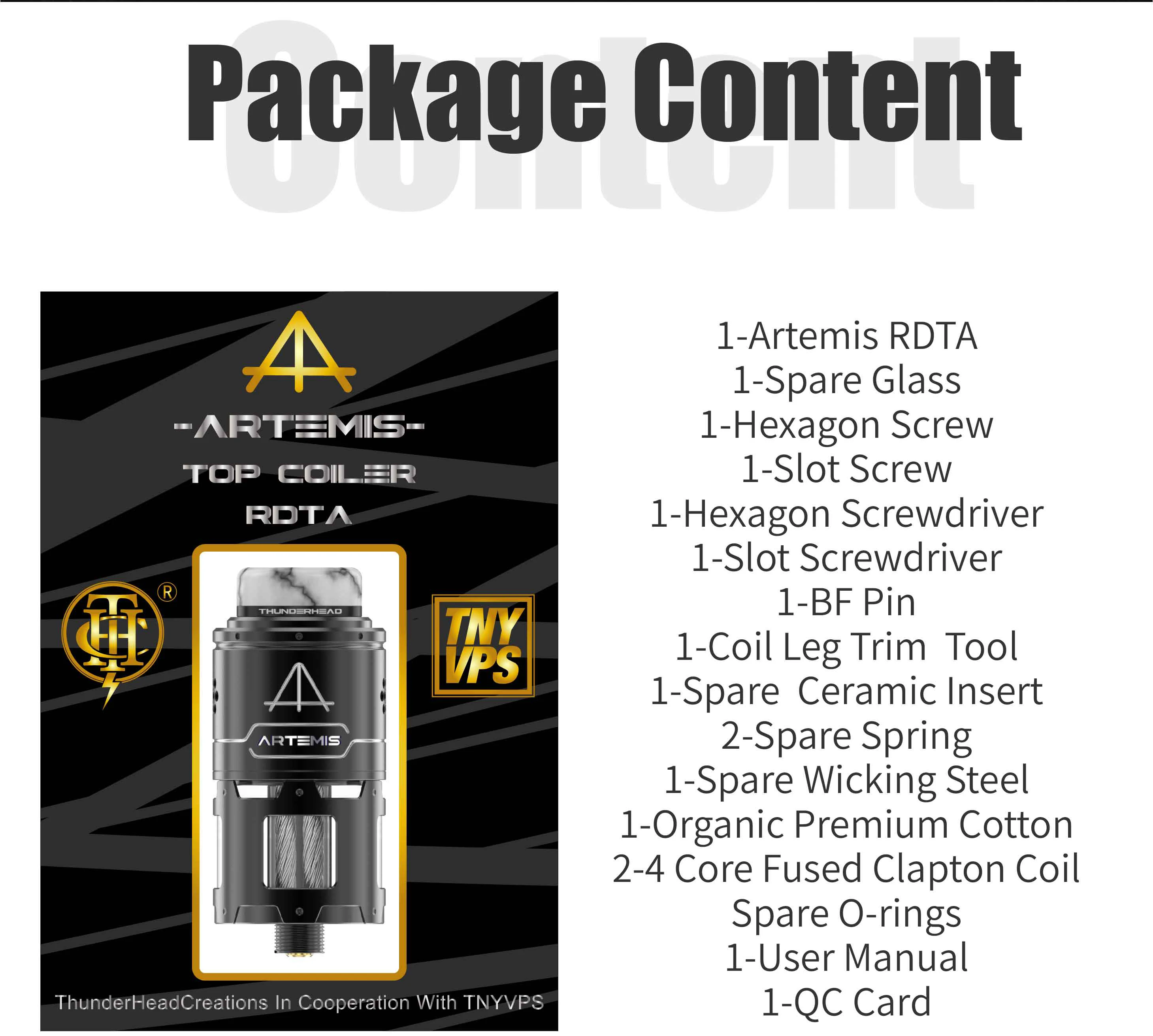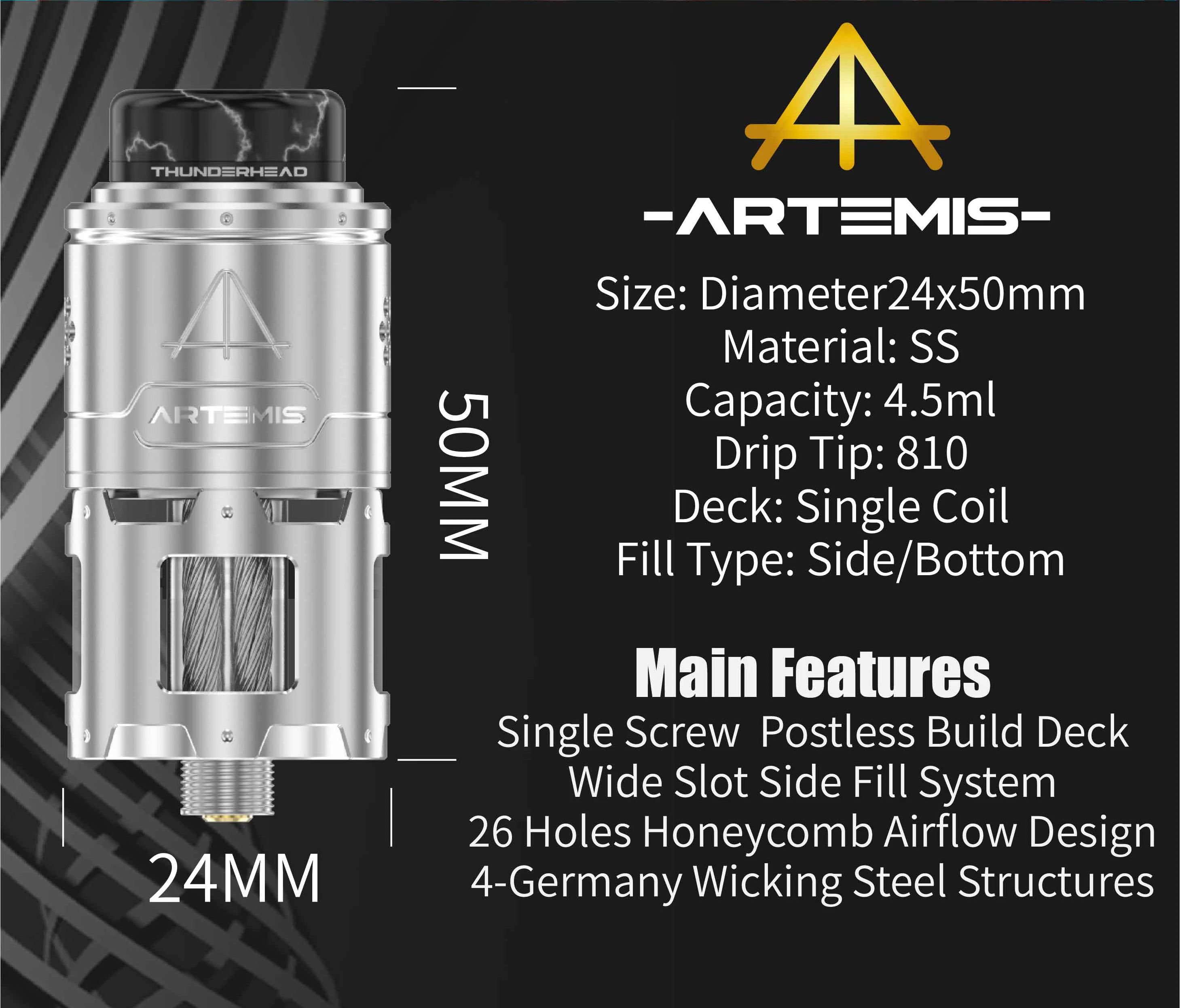 ThunderHead créations Artemis RDTA – Cigarette électronique 24mm de diamètre, réservoir de vapoteur simple sans poste, atomiseur reconstructible