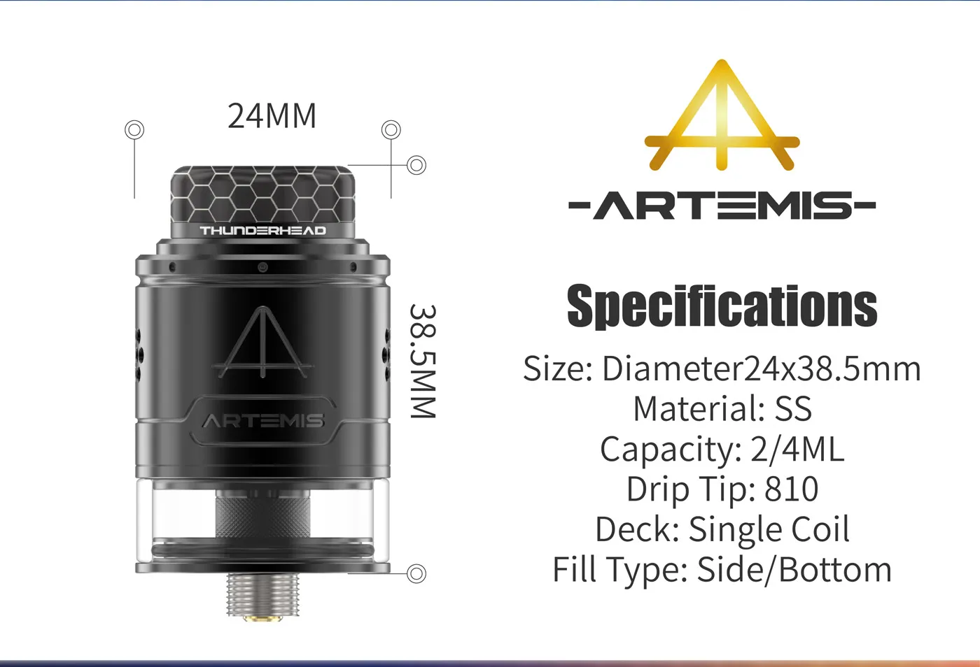 ThunderHead créations Artemis RDTA V1.5 – atomiseur de Cigarette électronique à bobine unique, réservoir goutte à goutte 810, 2ml/4ml