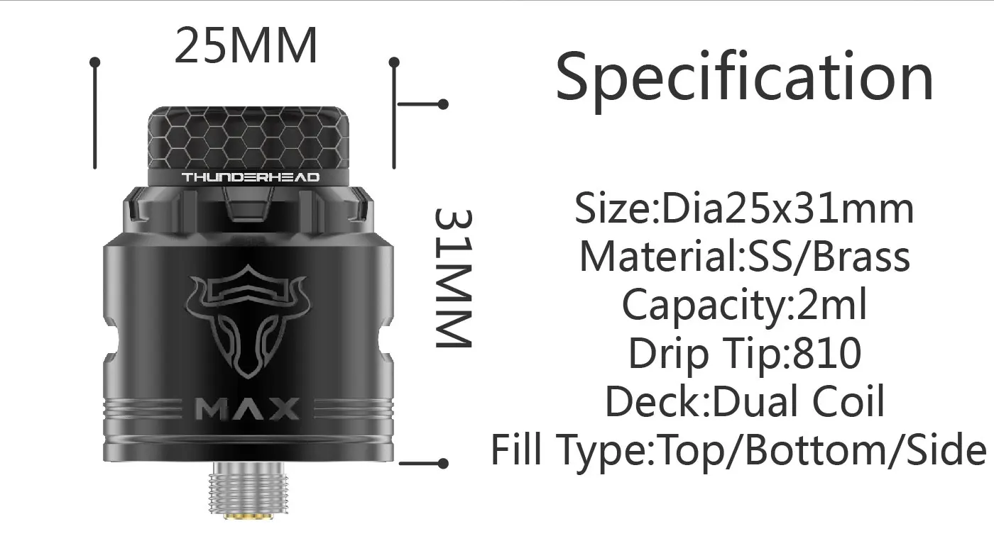 ThunderHead créations – atomiseur dégoulinant reconstructible Tauren Max, adapté au BF Pin Mod 2ml, Vape de Cigarette électronique RDA