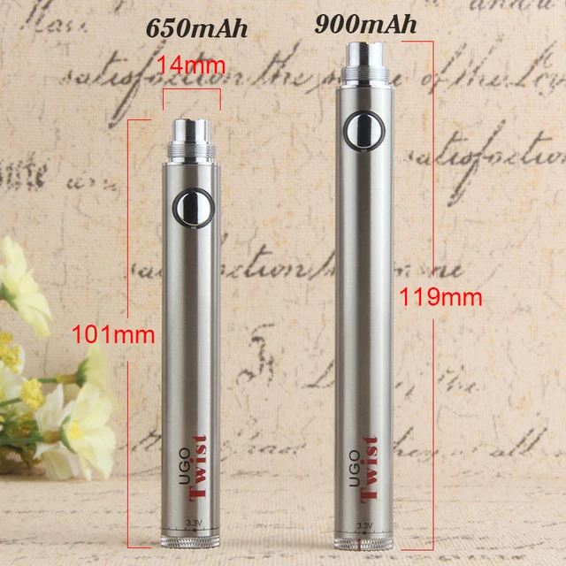 UGO – batterie Twist VV, 650mah, 900mah, pour stylo vapoteur, atomiseur de Cigarette électronique à filetage Ego 510, chargeur USB Passthrough