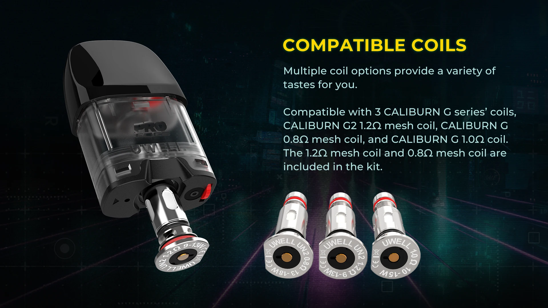 Compatible avec 3 bobines de la série CALIBURN G, la bobine maillée CALIBURN G2 1.2Ω, la bobine maillée CALIBURN G 0.8Ω et la bobine CALIBURN G 1.0Ω. Le kit comprend deux bobines maillées de 1,2 Ω et 0,8 Ω. Plus d’options de saveur sont fournies pour les vapeurs.