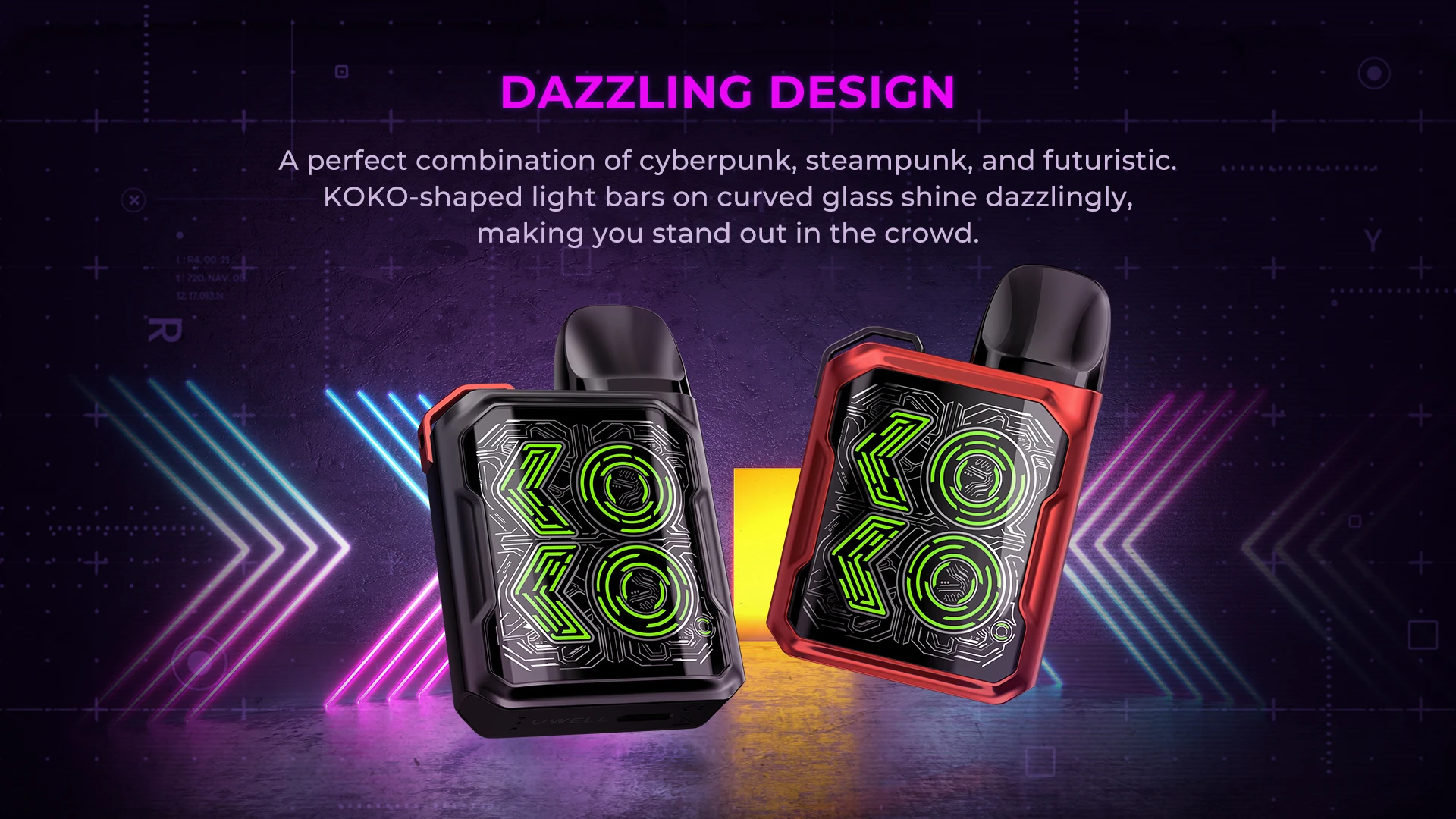 CALIBURN GK2 est une version améliorée de la série KOKO PRIME. C’est une combinaison parfaite de cyberpunk, steampunk et futuriste. Les barres lumineuses en forme de KOKO sur le verre incurvé brillent éblouissant.