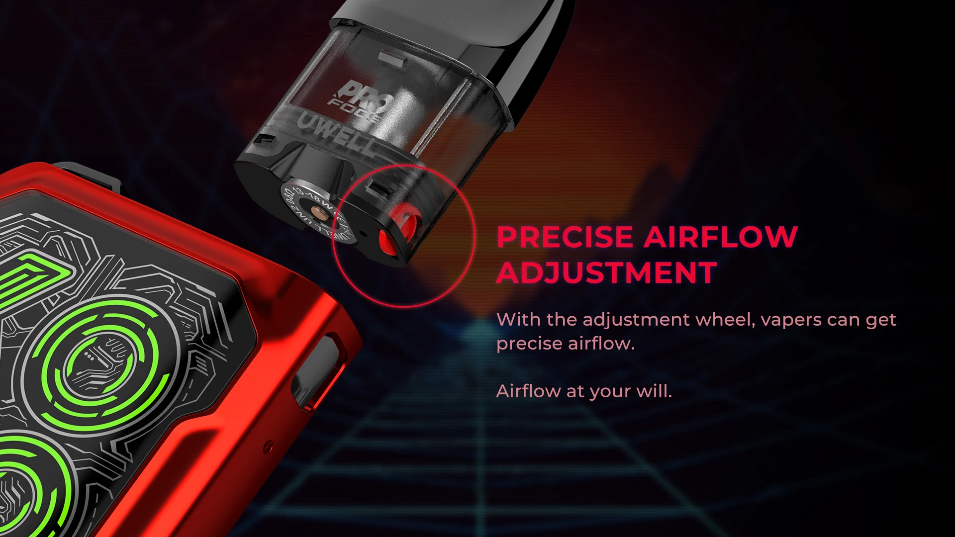 Les vapeurs peuvent obtenir un flux d’air précis en réglant avec précision la roue de flux d’air au bas de la cartouche.
