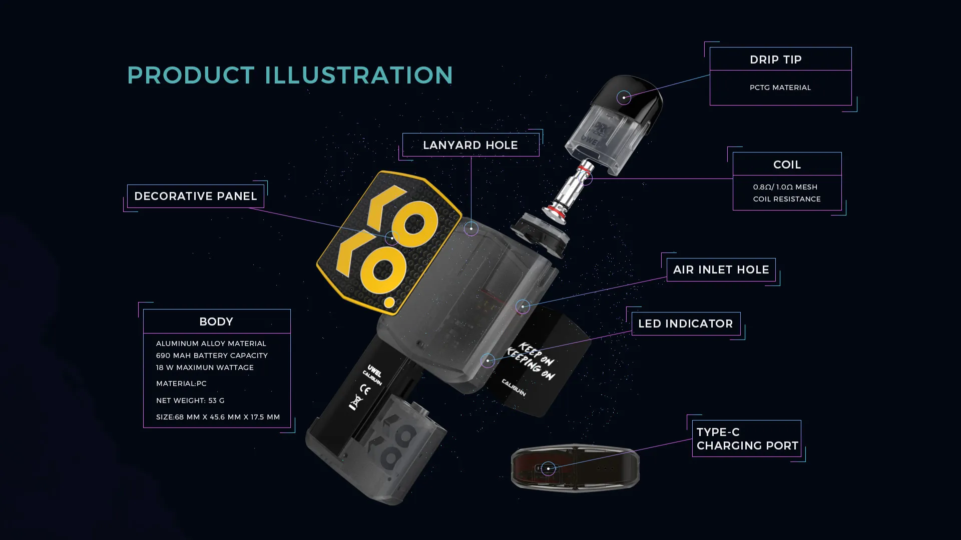 Uwell – cigarette électronique Caliburn KOKO Prime, Kit de Vision, batterie 690mAh, cartouches de 2ML, UN2 mesha-h, 0,8 ohm