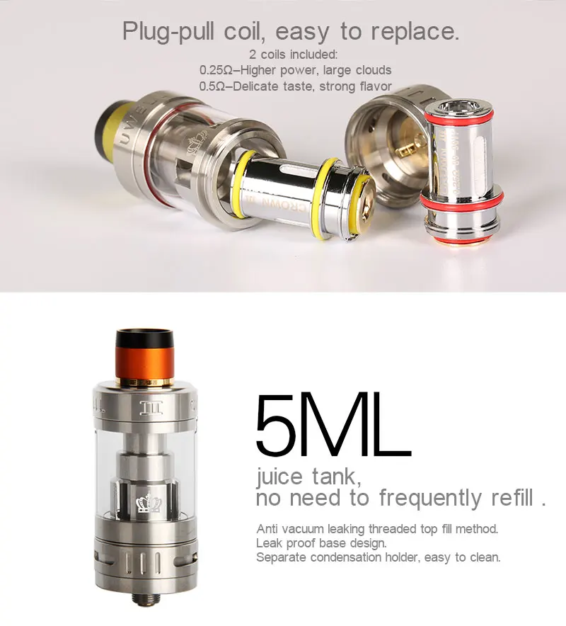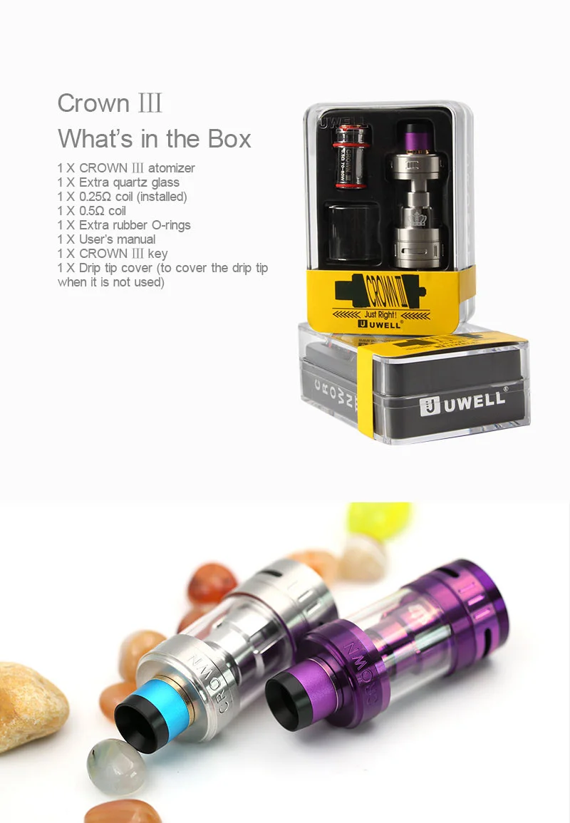 UWELL CROWN 3 Tank 0.25ohm 0.5ohm Coil 5ml Capacity 510 Thread Electronic Cigarette Sub Ohm Tank Vape Atomizer E-cigarette Vape