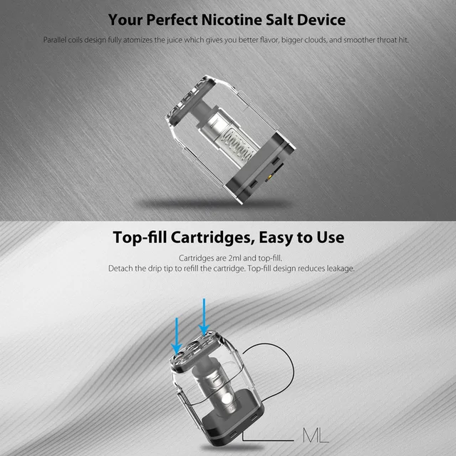 8. Cartouche de remplissage par le haut de 2ml, facile à utiliser