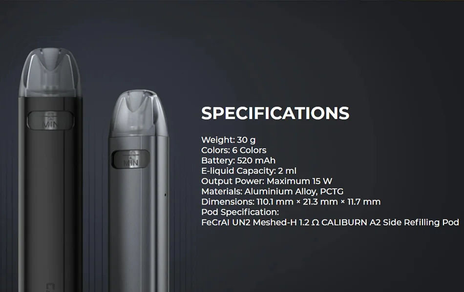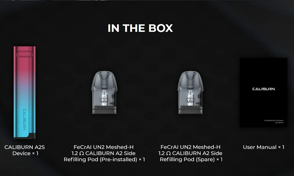 Le Kit Uwell Caliburn A2S est livré avec Caliburn«Série s et est un système de dosette MTL, offrant plus de polyvalence et est pocketable. Pour la capacité de la batterie, il est alimenté par une batterie interne de 520mAh avec une sortie max de 15W. Performante technologie de réglage des saveurs PRO-FOCS et compatible avec la gousse Caliburn A2, la cartouche pod contient 2ml de jus de vape, la cartouche un système de remplissage latéral, un e-liquideFenêtre et a une bobine 1.20hm A2S intégrée. Construit en alliage d’aluminium, il est durable et convivial pour les débutants.