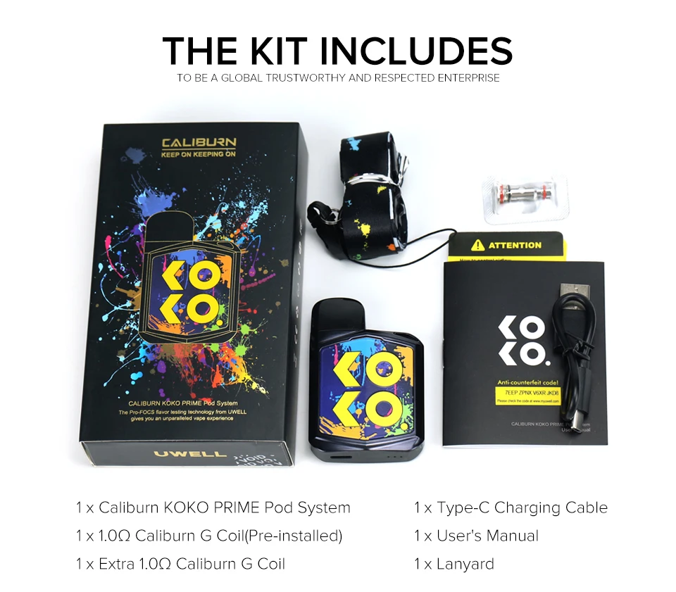 Uwell – Kit de Cigarettes électroniques Caliburn KOKO PRIME, avec cartouches de 2ml, 690mah, Mod adapté avec Caliburn G Pod Caliburn G Coil