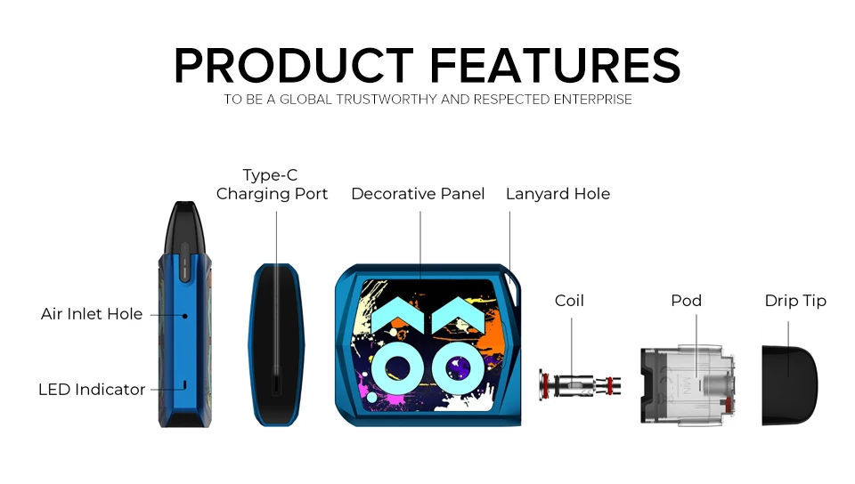 Cela fait un an que nous avons sorti le premier Caliburn KOKO, aujourd’hui nous avons conçu le nouveau KOKO PRIME, avec plusieurs panneaux décoratifs magnétiques remplaçables pour ajouter plus de plaisir au produit. Il est compatible avec Caliburn G pod & bobines, et dispose de deux flux d’air différents lorsque le pod est installé dans des directions différentes. Utilisation Technologie de test de saveur pro-focs, elle peut vous apporter une expérience de vape incomparable. Y compris une lanière conçue comme un accessoire à la mode pour s’adapter à vos tenues de différentes couleurs, elle peut libérer vos mains et est pratique à transporter. Enfin, il a une apparence exquise, portable et à la mode pour correspondre aux préférences du courant Tendance.