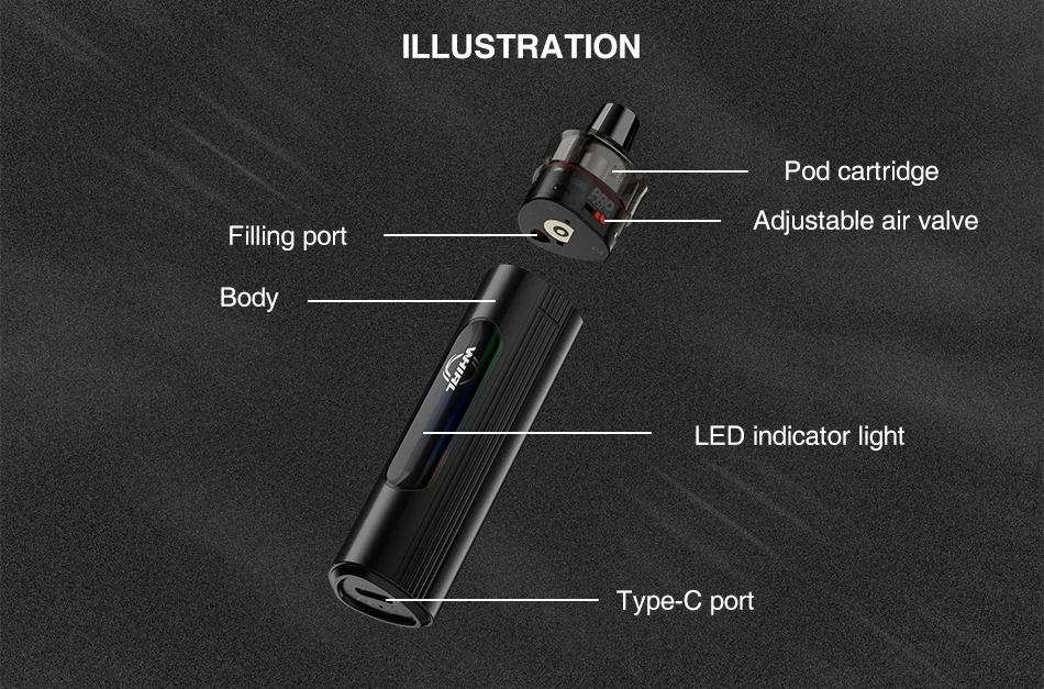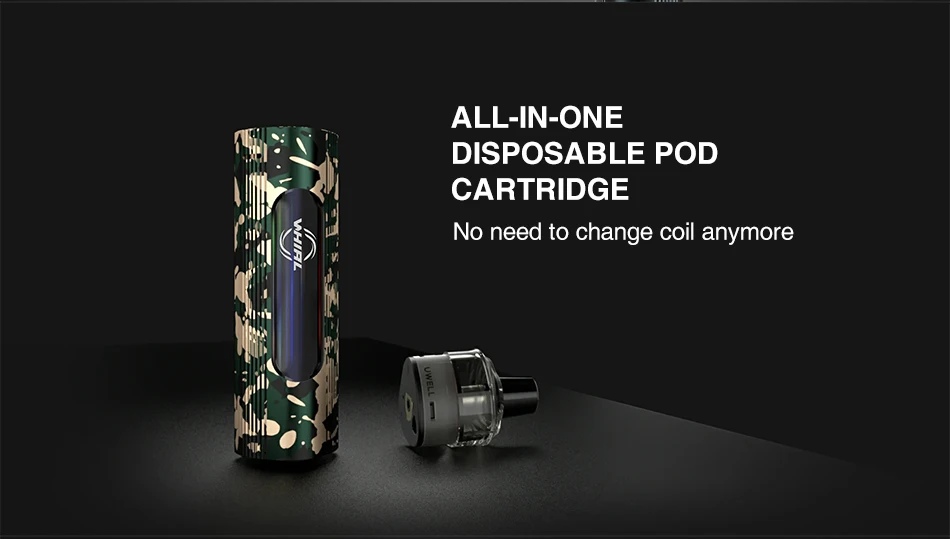 UWELL WHIRL T1 Kit utilise la technologie pro-focs pour créer un goût réaliste, et son pod et sa bobine intégrés répondent à la riche expérience gustative. Le matériau de son corps est en alliage d’aluminium et PCTG, qui est léger et portable; La conception d’apparence triangulaire arrondie apporte une nouvelle sensation, et il est également affiché lorsqu’il est placé plus stable et pas facile à tomber. Bâti en 1300 mAh batterie intégrée vous apporte une longue expérience de vapotage et 2A type-c charge ne prend que 1 heure pour charger complètement, ce qui est pratique et rapide. Quant à la cartouche de dosette jetable tout-en-un de 3ml, bobine UN2 mesh-h intégrée de 0,75 ohm, plus besoin de changer la bobine, la conception de remplissage est plus pratique et efficace pour éviter les fuites, et il est jetable lorsqu’il est utilisé. Doté du réglage de la sortie et du débit d’air, 3 niveaux répondent aux besoins personnels, le mode 1 est de 14W, le mode 2 est de 15W et le mode 3 est de 16W, il suffit de faire glisser le bloc pour ajuster le débit d’air. Le dessin activé est facile à utiliser et sans mauvais déclenchement. De plus, la conception des dosettes de verrouillage pour enfants peut efficacement empêcher les enfants d’aspirer.