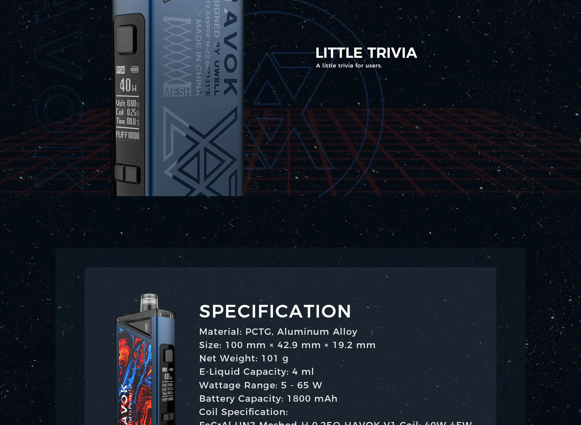 | Numéro de Modèle | Uwell HAVOK Kit |