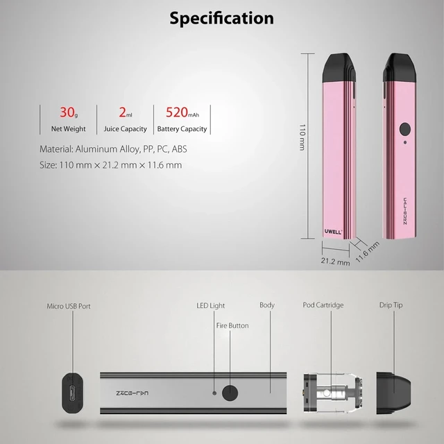Uwell Caliburn Kit est un kit de système compact et portable qui est le premier kit de vape pod d’uwell. Il est livré avec une batterie intégrée de 520mAh et une cartouche de dosette de 2ml à remplissage par le haut. Le Caliburn prend en charge les fonctions de vape directe et de vape à bouton. De multiples protections de sécurité sont appliquées. Le système désactivera automatiquement le mode de fonctionnement activé par tirage si le mécanisme activé par tirage tombe en panne. En outre, avec la conception à double bobine, le Caliburn peut vous donner une meilleure saveur, des nuages plus grands et un coup de gorge plus doux. Disponible en gris, violet Iris, rouge, noir, rose, bleu.