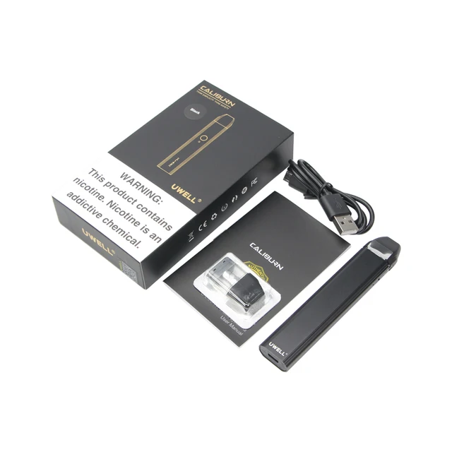 1 x batterie Uwell CALIBURN 1 x cartouche Uwell CALIBURN Pod 1 x câble Micro USB 1 x manuel d’utilisation