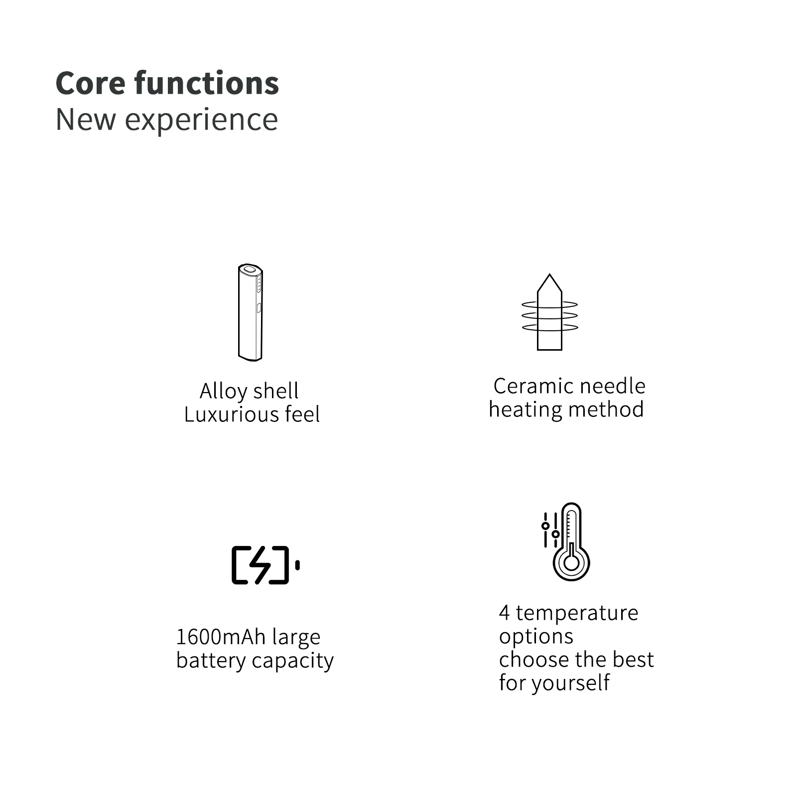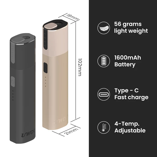 UWOO – Cigarette électronique YH avec dispositif de chauffage du tabac, 1600mAh, chaleur non brûlante, avec élément chauffant en céramique et boîtier en alliage d'aluminium
