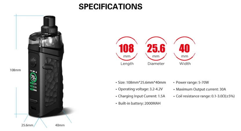 Le Kit de dosettes Jackaroo présente un design ergonomique pour une prise en main confortable. Avec une batterie intégrée de 2000mAh, vous pouvez charger rapidement via le port de charge étanche de Type C. La capacité de la batterie est en fait jusqu’à 2200mAh. Jackaroo Pod Mod Kit fournit un mécanisme étanche avec une conception de remplissage supérieure, il apporte plus de commodité et sans condensation. Jackaroo Pod adopte une puce de Vape Vandy améliorée, la puissance peut atteindre 70W. Le mod prend également en charge plus d’options de bobines de maille VVC de différentes résistances (0.15/0.3/0.6/0.9/1.2 ohm) pour offrir des choix de saveur plus larges et de meilleures performances gustatives. Vandy Vape Jackaroo Pod Kit peut répondre à tous vos besoins de vapotage DL/MTL.