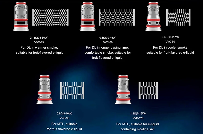 6. Compatible avec la série de bobines de maille VVC, plus de saveur