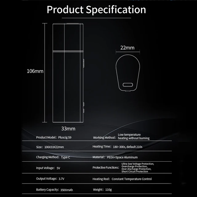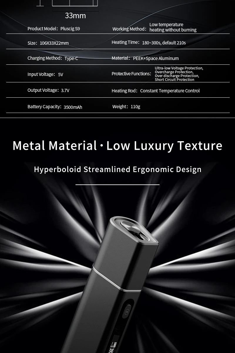 Vape Pluscig S9 – Kit de cigarettes électroniques, boîte Mod, batterie 3500mah, adapté au narguilé, bâton chauffant pour tabac sec, S8099