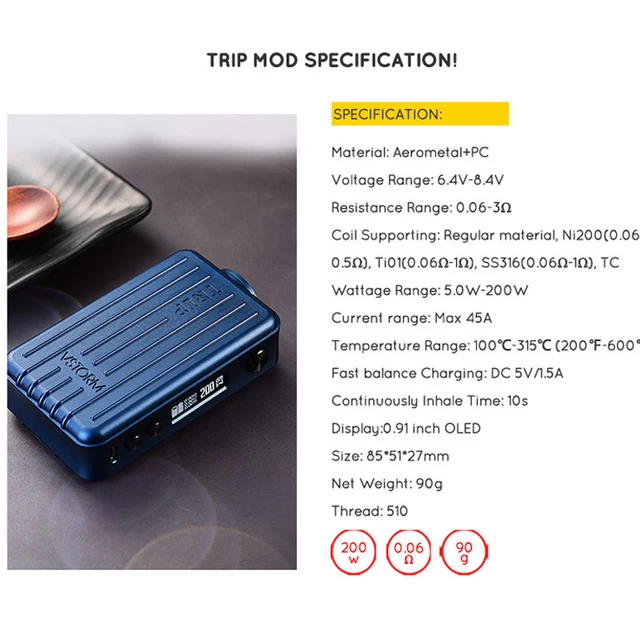7 avis pour Vapor Storm – Box de dérivation 200W avec écran 0.91 pouces, Mode VW TCR CCW, couvercle magnétique à 510 fils