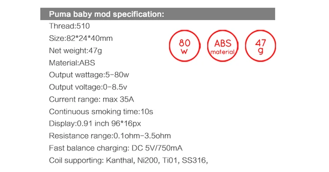 | Numéro de Modèle | Vapor Storm Pum Baby Box Mod |