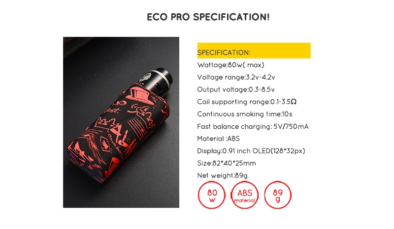 | Numéro de Modèle | ECO Pro Lion RDA 80w Vape Mod Kit |
