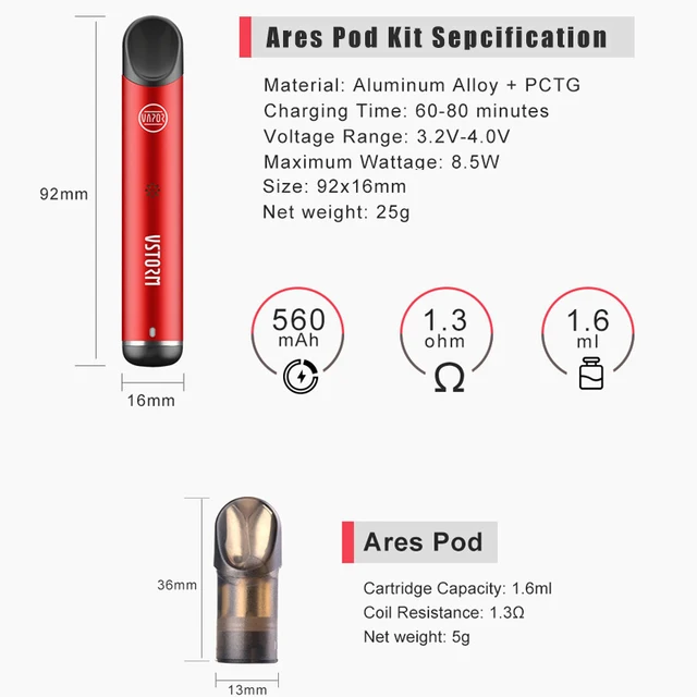 Vapor Storm – Cigarette électronique originale, système de dosettes, 560mAh, avec bobine de maille de 1.6ml, cartouche magnétique rechargeable