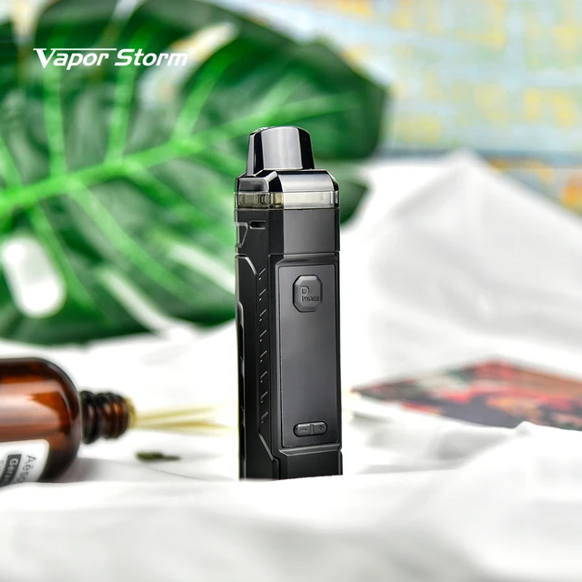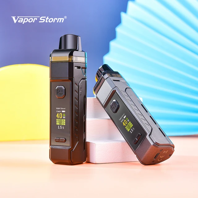Vapor Storm V-PM 40 Pod System Kit est fabriqué en PCTG avec léger. Vapor Storm V-PM est alimenté par une seule batterie 18650 avec une plage de sortie réglable de 5-40W.