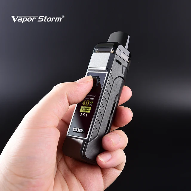 Vapor Storm V-PM 40 pod kit peut afficher les informations de vapotage par écran couleur de 0.96 pouces. Vapor Storm V-PM 40 cartouches coms avec capacité de 4.8ml avec conception de remplissage latéral.