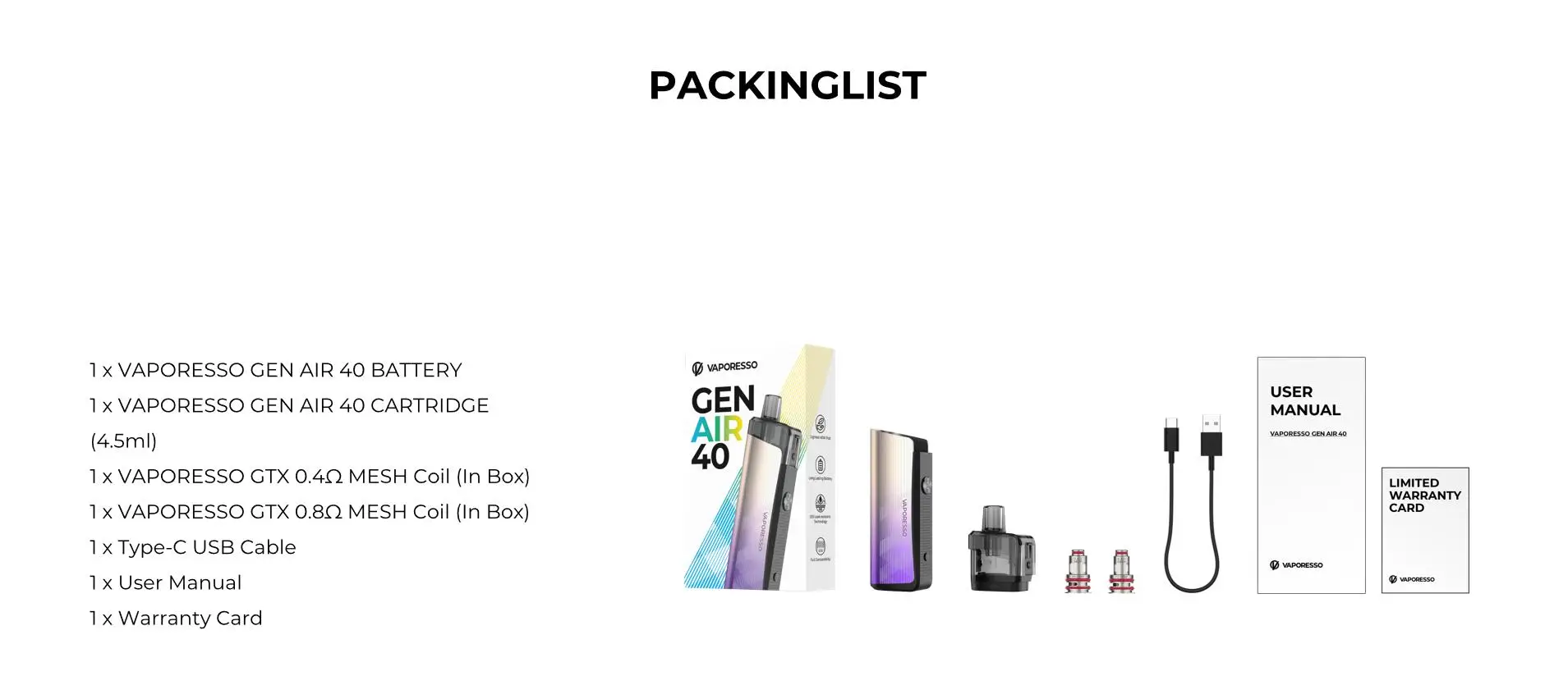 Soyez le premier à laisser votre avis sur “Vaporesso – Cigarette électronique GEN AIR 40, Kit de dosettes, batterie 1800mAh, 40W, MOD Vape, cartouche 4.5ml, compatible avec la bobine GTX”