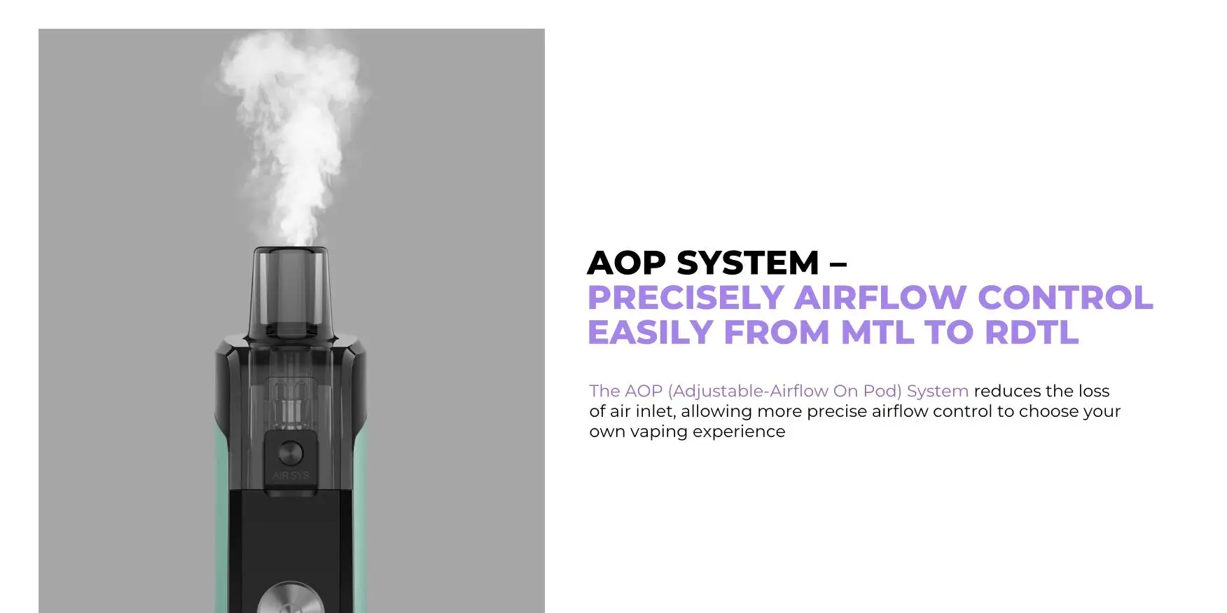• Système de flux d’air AOP (réglable-débit d’air sur le Pod)