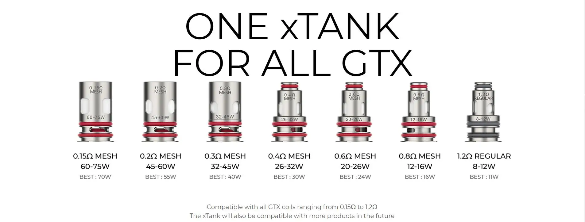 7. Compatible avec toutes les bobines de vaporéso GTX allant de 0,15Ω à 1,2Ω