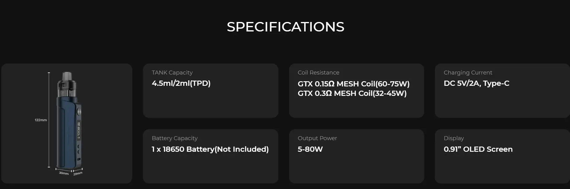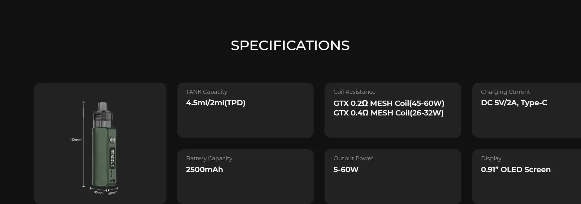 Résistance de bobine: bobine de maille de vaporéso GTX 0.2Ω (45-60W), bobine de maille de vaporéso GTX 0.4Ω (26-32W)