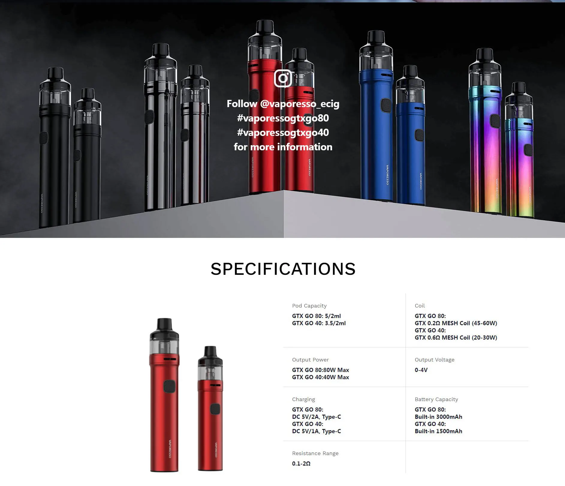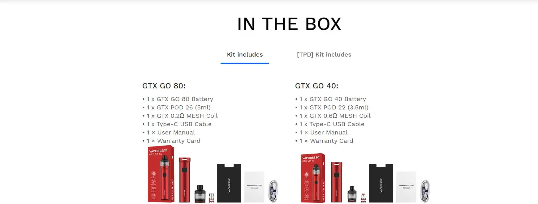 | Numéro de Modèle | Vaporesso GTX GO 40/80 Kit |